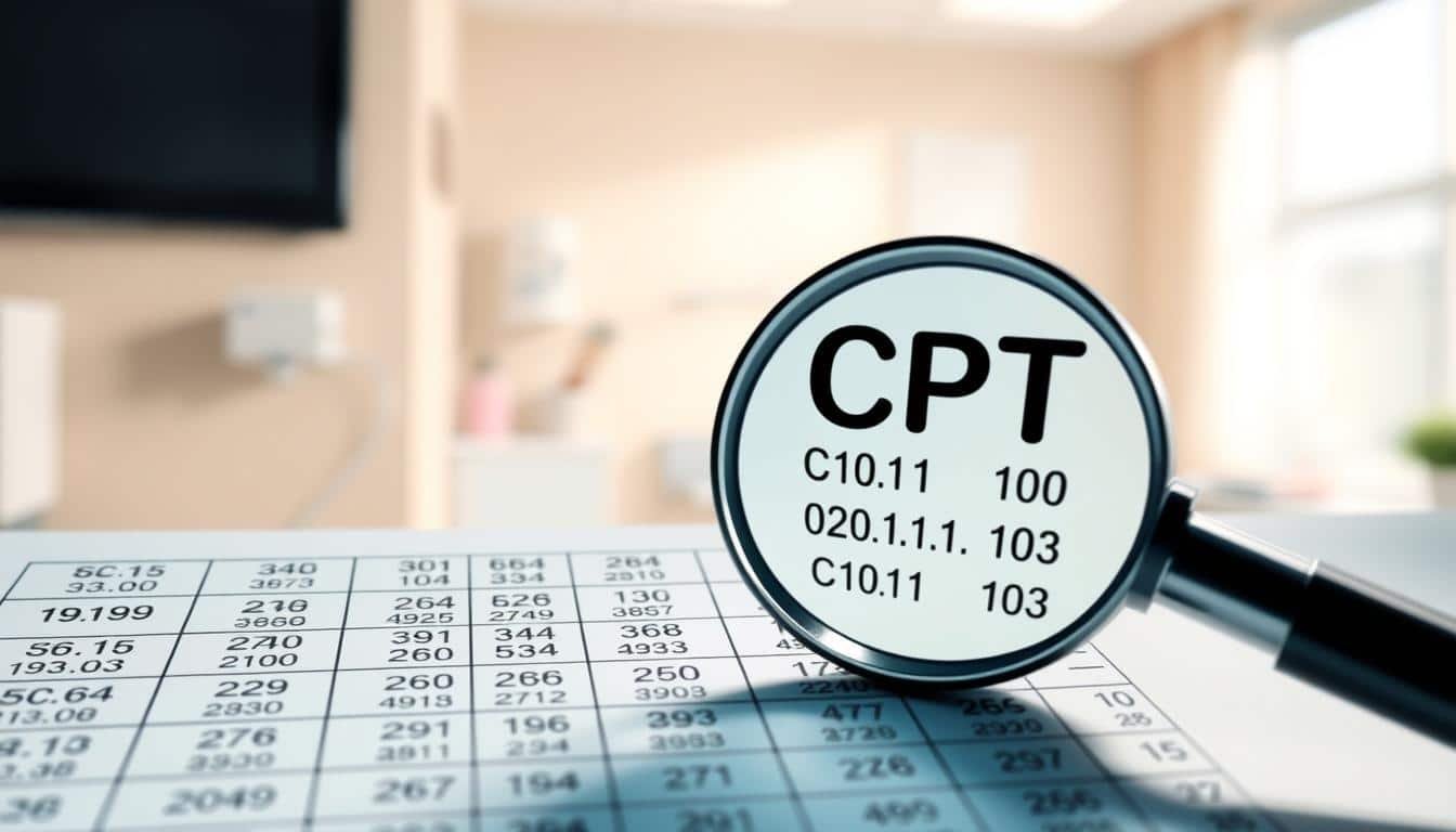 A-detailed-technical-illustration-of-CPT-code-reimbursement.-The-foreground-depicts-a-series