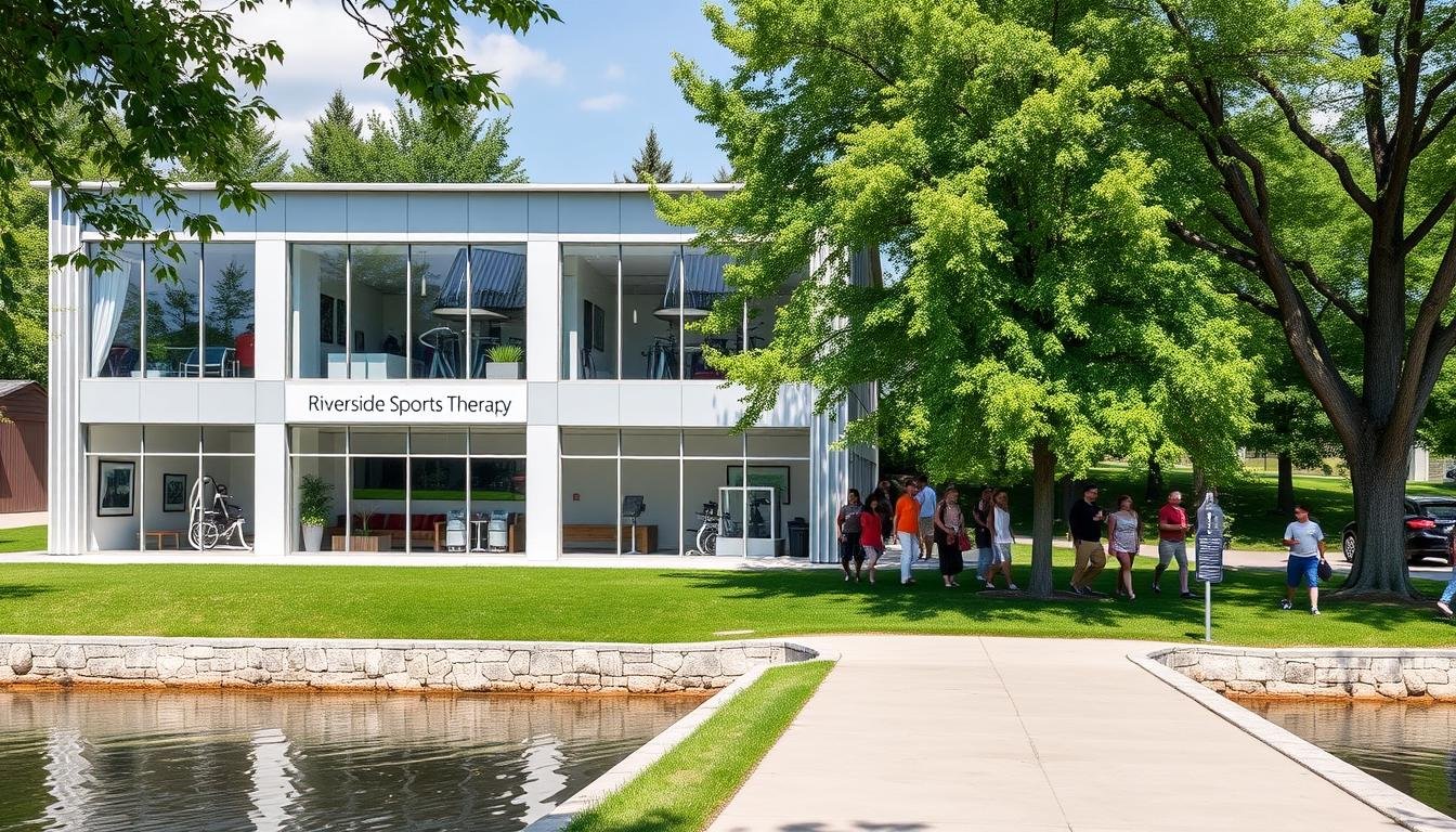 A-two-story-building-with-large-windows-and-a-modern-sleek-facade-nestled-along-the-banks-of-