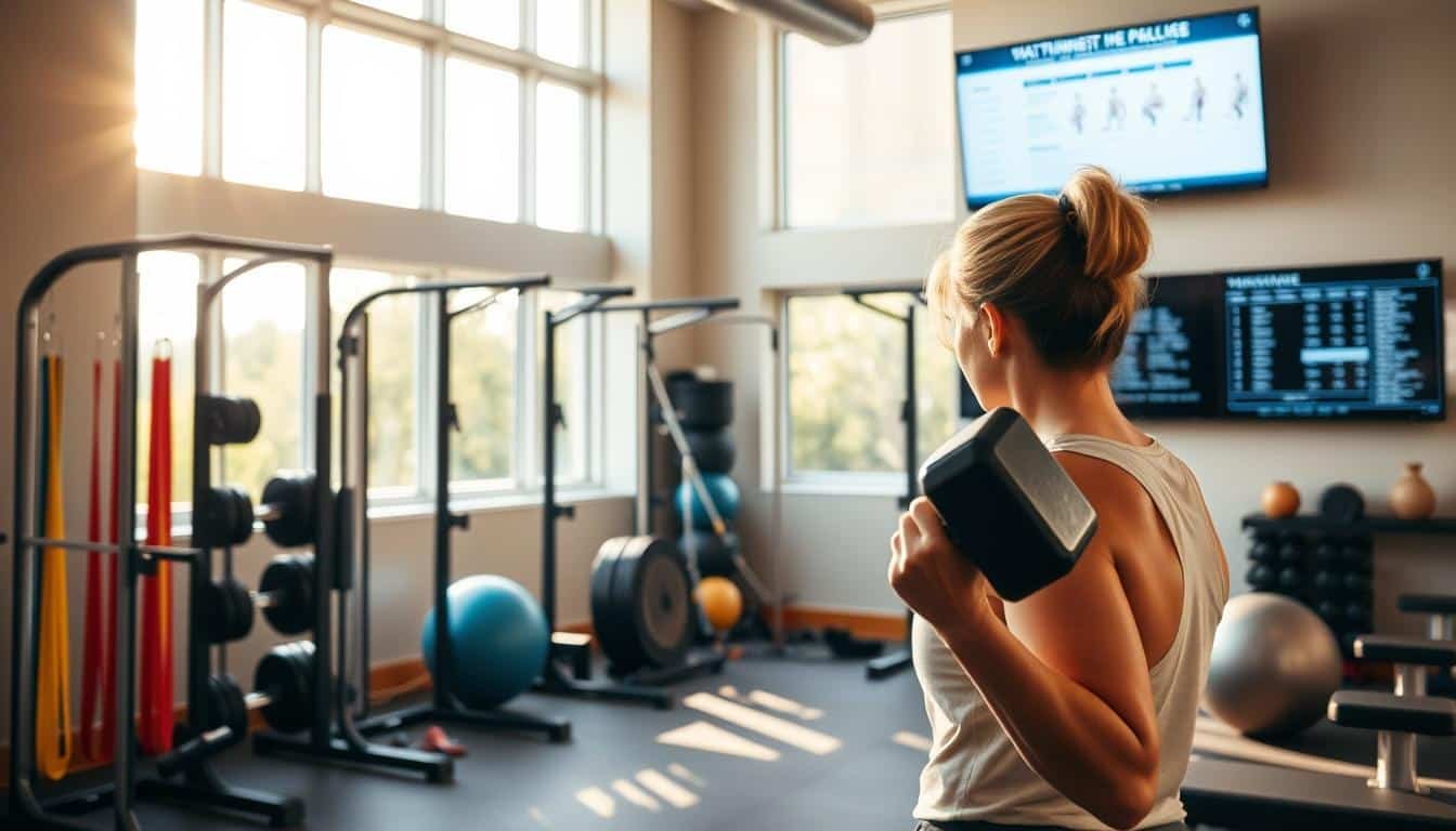 A-physical-therapy-clinic-bathed-in-warm-natural-light-streaming-through-large-windows.-In