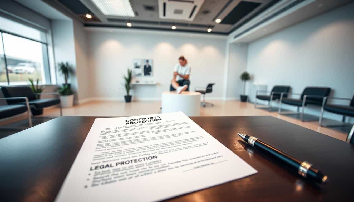 A-modern-sports-therapy-clinic-interior-with-a-focus-on-liability-protection-documents.-In-the