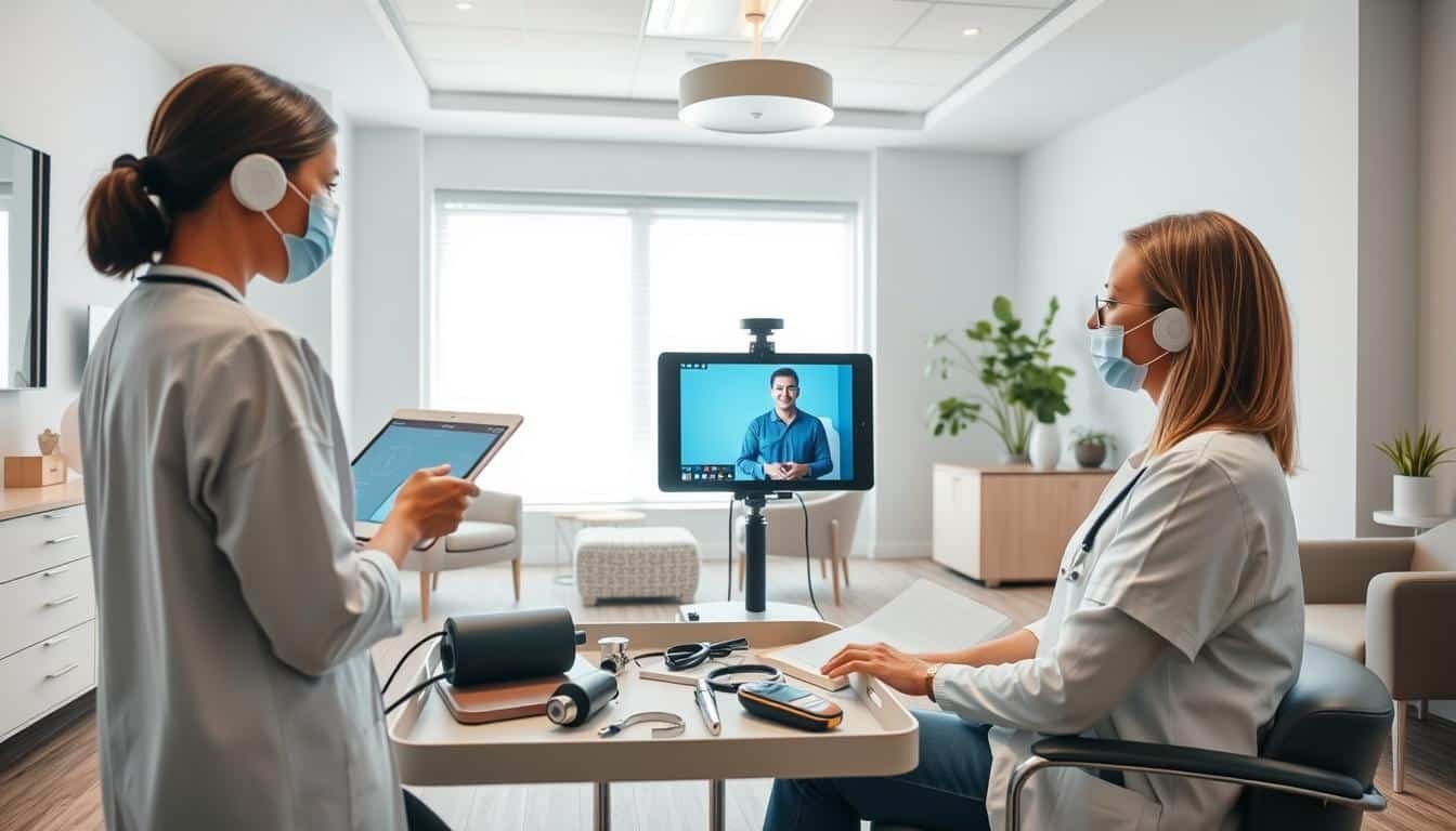 A-well-lit-medical-examination-room-with-modern-telehealth-equipment.-In-the-foreground-a