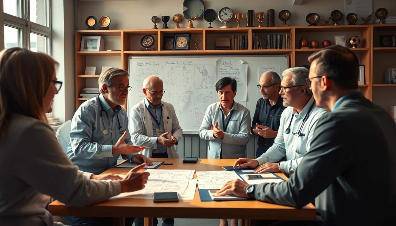 A-collaborative-team-of-sports-therapists-coaches-and-experts-from-diverse-disciplines-gather