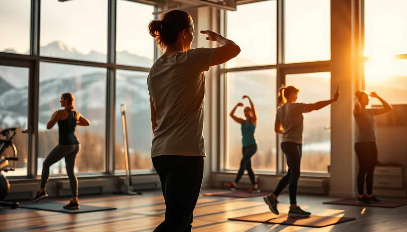 A-vibrant-sports-therapy-clinic-set-against-the-majestic-backdrop-of-the-Canadian-Rockies.-In