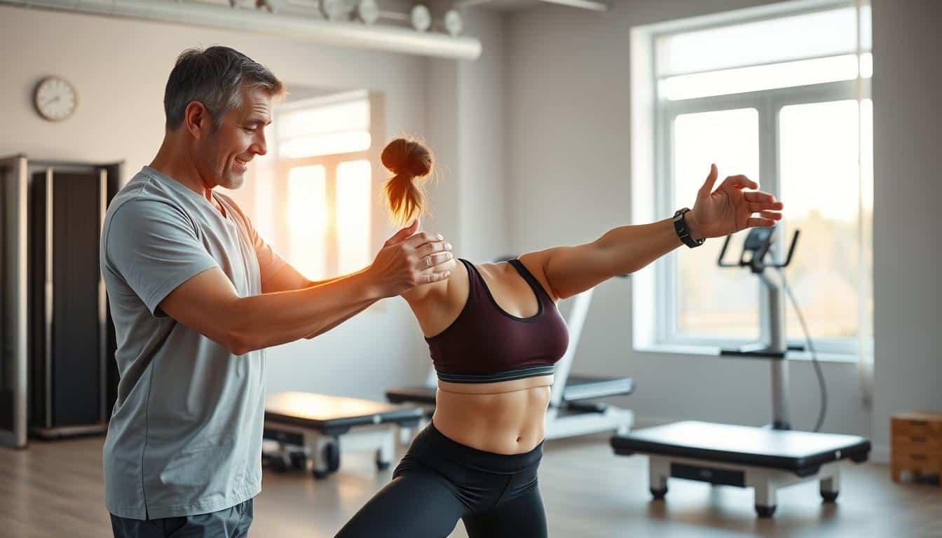 A-physiotherapist-carefully-guiding-a-patient-through-a-personalized-exercise-routine-in-a