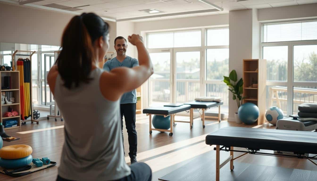 A-serene-physical-therapy-session-in-a-well-equipped-clinic.-In-the-foreground-a-patient