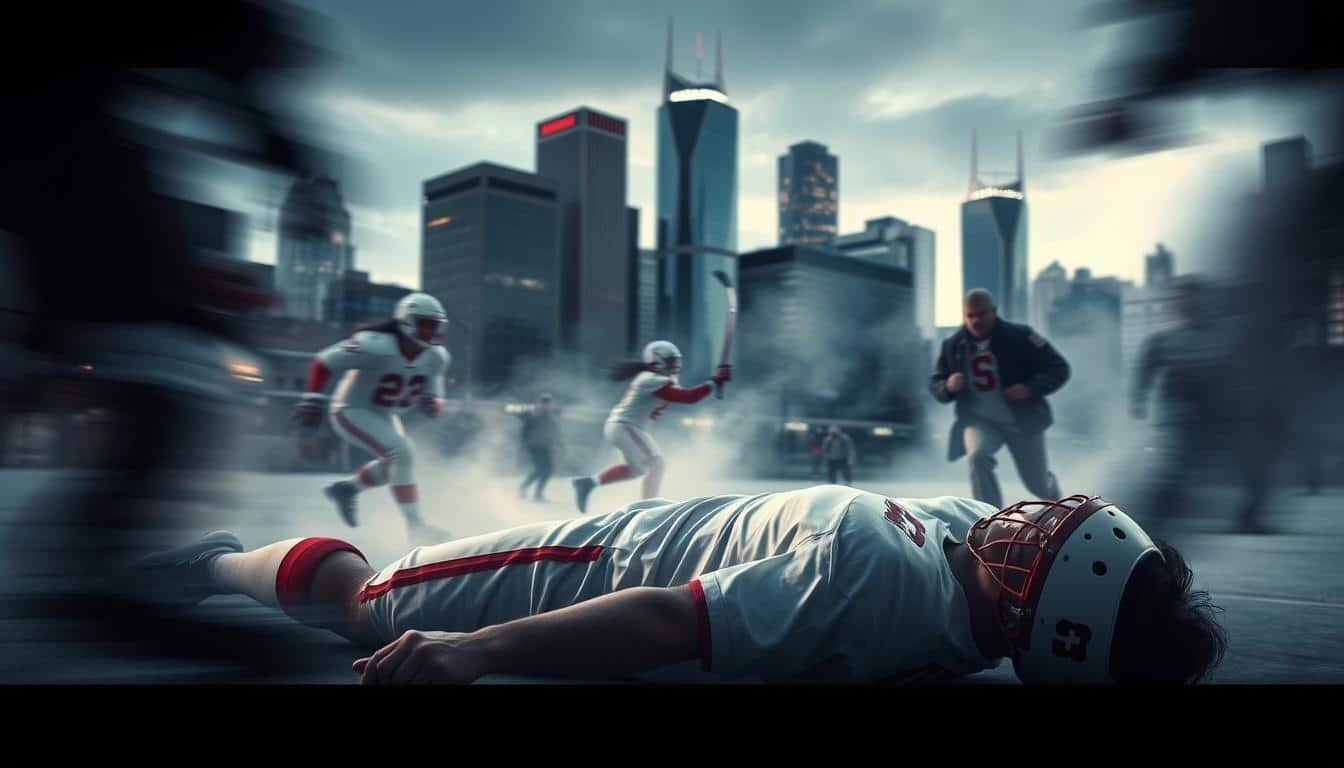 A-dynamic-sports-injury-scene-unfolding-with-dramatic-impact-in-the-heart-of-Calgary.-In-the