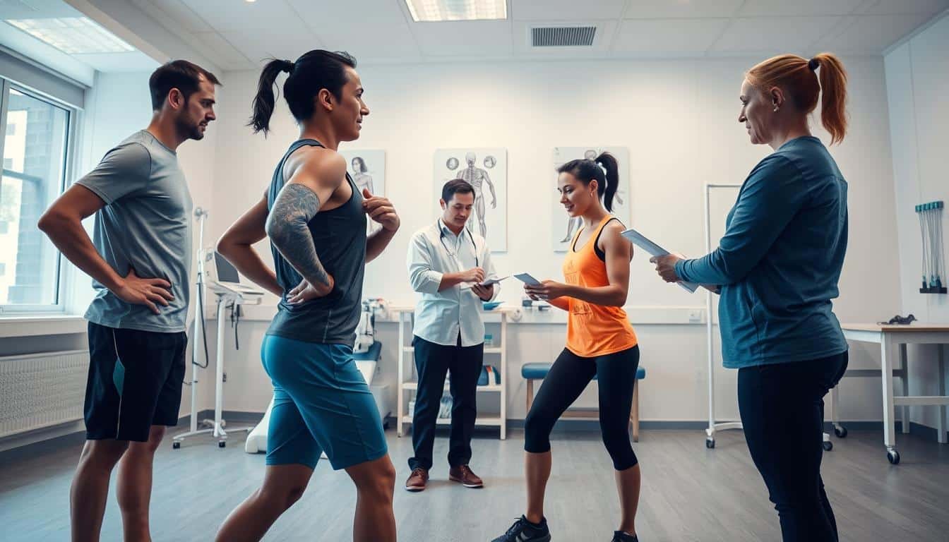 A-bright-well-lit-indoor-physiotherapy-clinic.-In-the-foreground-a-runner-in-athletic-attire-