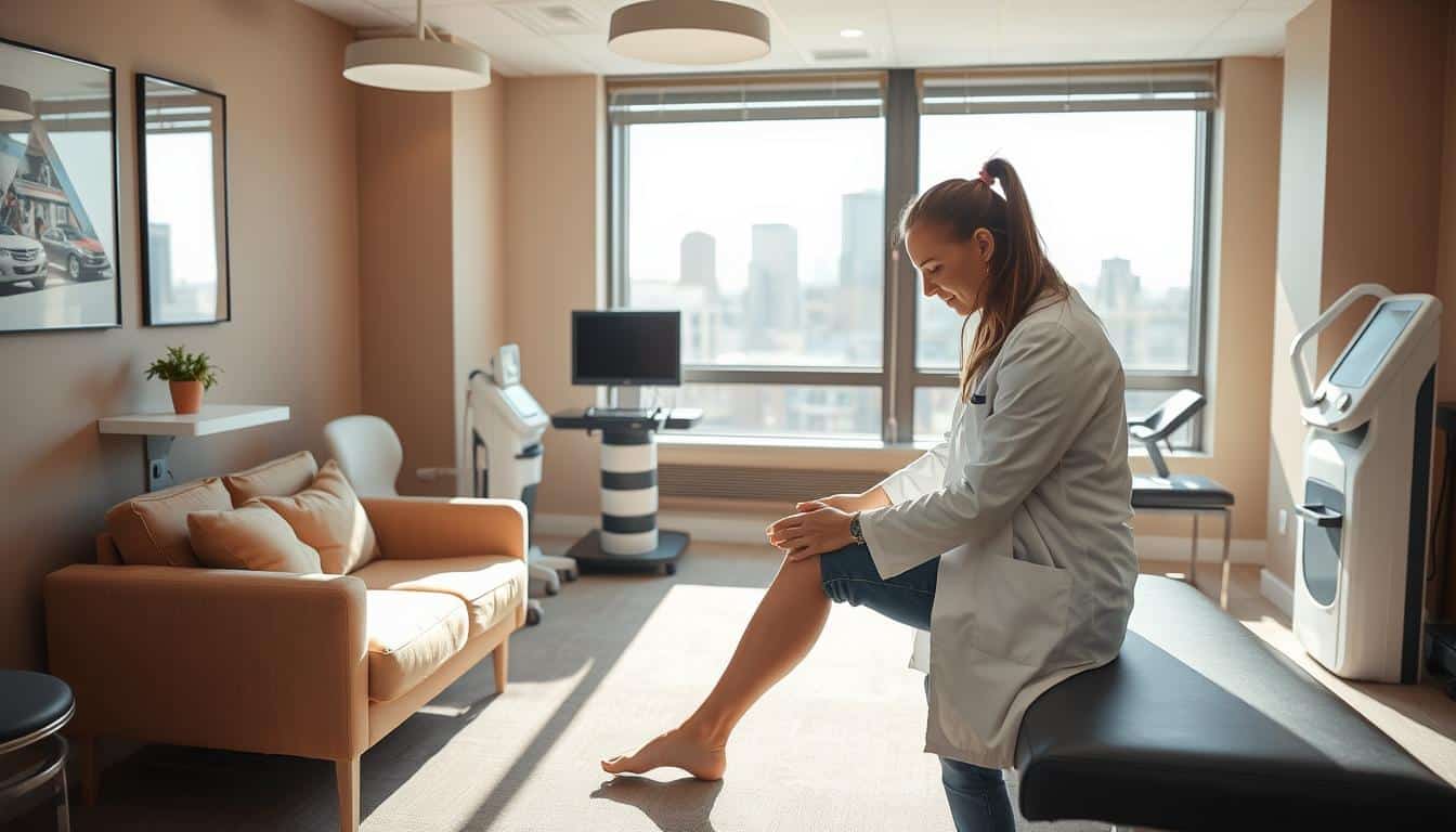A-sports-therapist-in-a-well-equipped-clinic-in-downtown-Calgary-Alberta-attentively