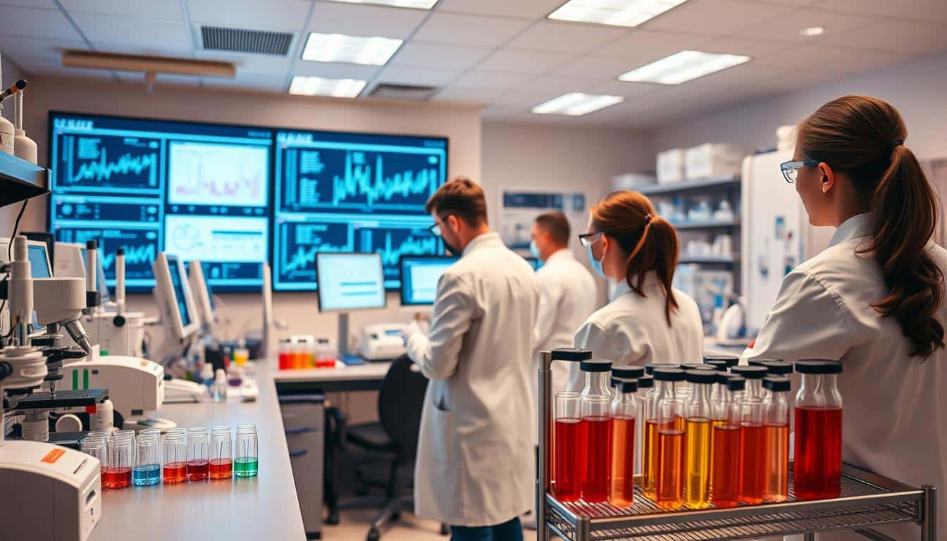 A-clinical-research-laboratory-filled-with-state-of-the-art-equipment-a-team-of-scientists-in-