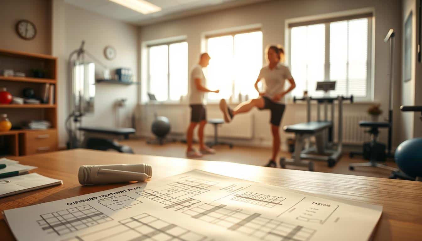 A-warm-well-lit-physiotherapy-clinic-interior.-In-the-foreground-a-customized-treatment-plan-