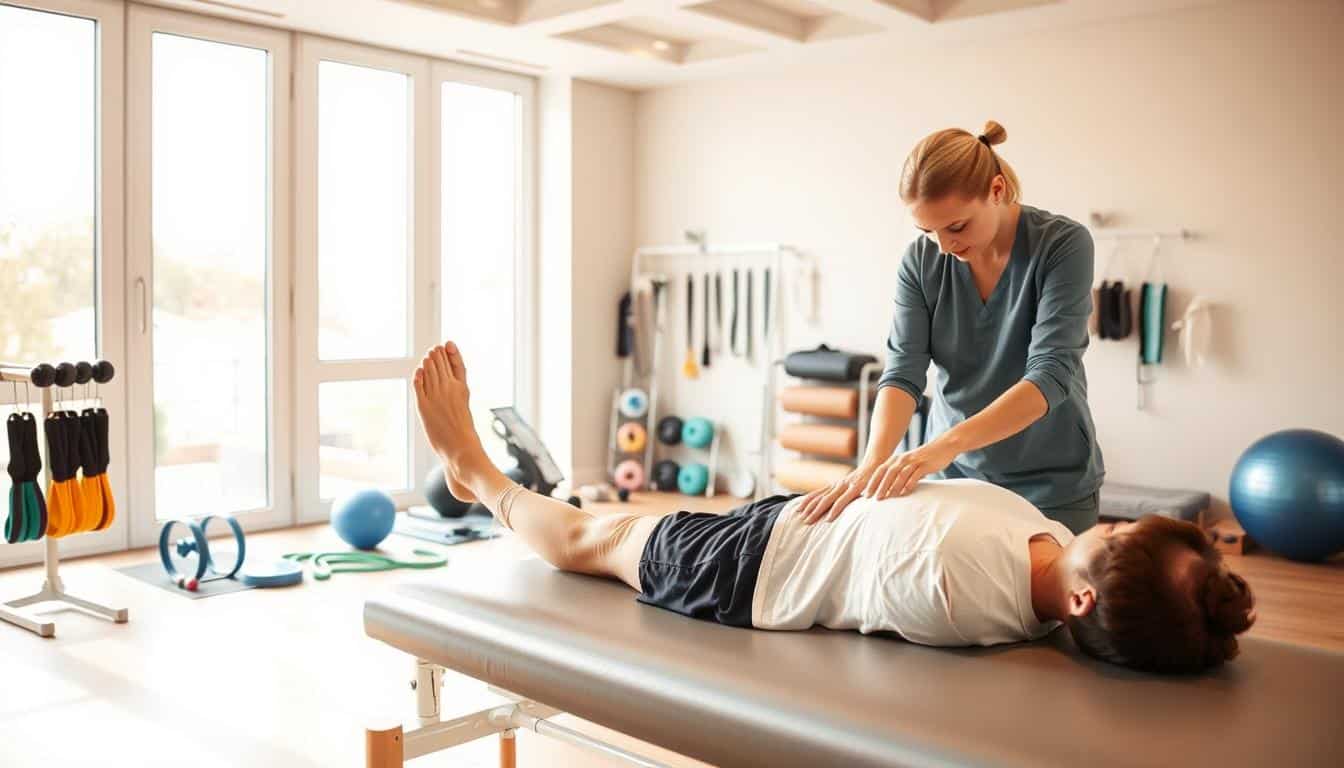 A-physiotherapy-assessment-in-a-modern-well-equipped-clinic.-In-the-foreground-a