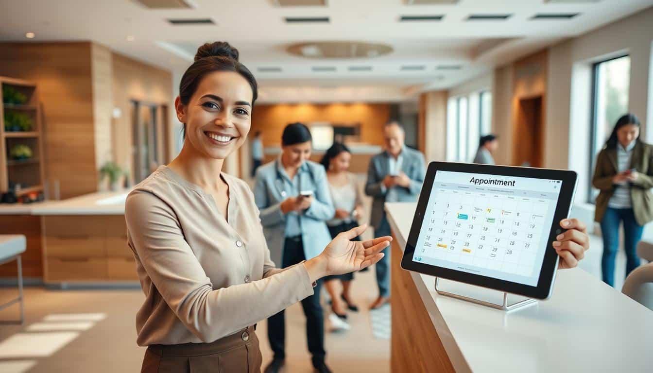 A-modern-well-lit-reception-area-with-a-large-desk-and-comfortable-seating.-In-the-foreground
